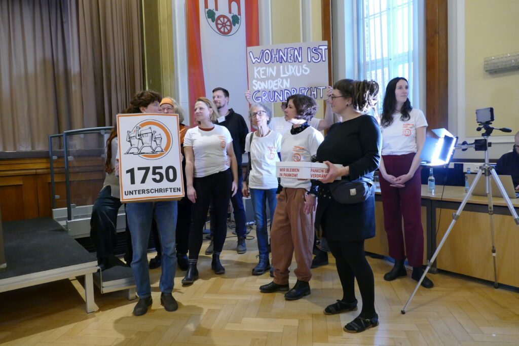 Wir sind eine Initiative von Mieter:innen in Berlin-Pankow und kämpfen gegen auslaufende Sozialbindungen, hohe Mieten und Kündigungen wegen Eigenbedarf!